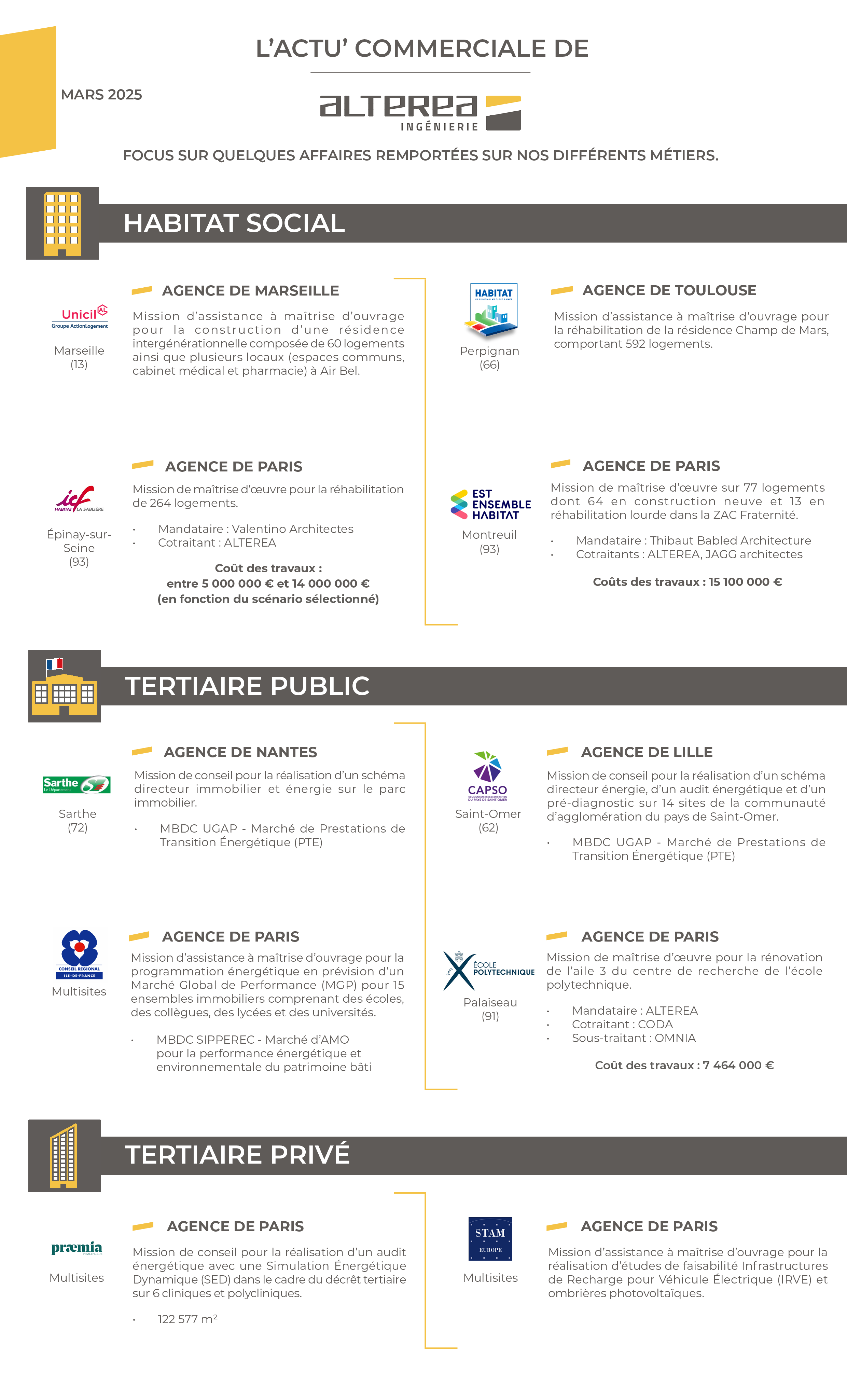 Voici quelques missions remportées par notre Direction du développement commercial sur le mois de mars 2025.